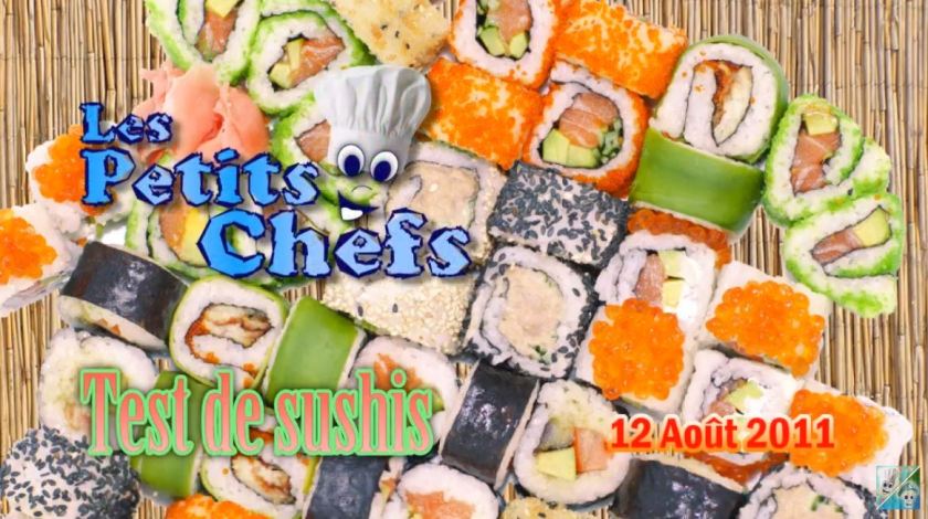 Les Petits Chefs continuent de goûter aux Sushis. Damien essaillera entre autre du WASABI!! Cette fameuse pâte verte au goût ultra piquant!! Hi! hi! hi! Pour dessert, des sushis aux fruits! Pour couronner le tout, des BLOOPERS à la fin du web-épisode!