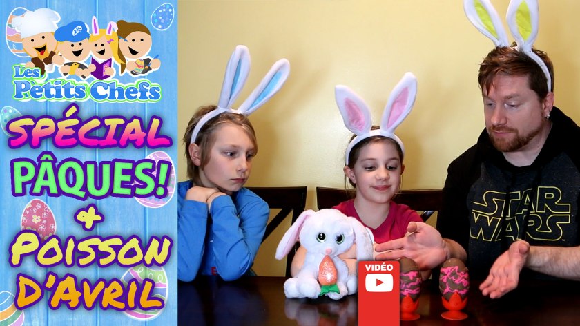 Cette année Pâques est le même jour que le Poisson d’avril! Nous vous suggérons alors une recette d’œufs en chocolat avec des poissons Bretzel à l’intérieur! Miam! Nous vous suggérons fortement de rester jusqu’à la fin de la vidéo pour voir le tour que les enfants ont joué à Pat ainsi que les bloopers, dont un qui a failli empêcher de filmer une des scène de l’épisode!