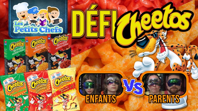 On essais de deviner le goût des pâtes et croustilles Cheetos et de les associer ensemble, tout ça les yeux bandés se fiant au goût et à l’odeur parmi les saveur de Fromage, Jalapenos et Enflammé. Enfants VS Parents. Qui gagnera? Cette vidéo contient des bloopers! Faut regarder jusqu’au bout pour ne pas les manquer.